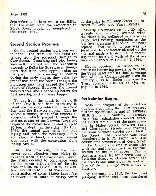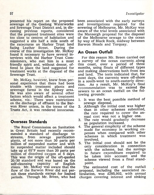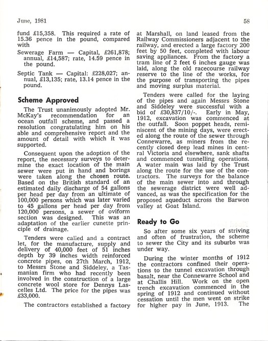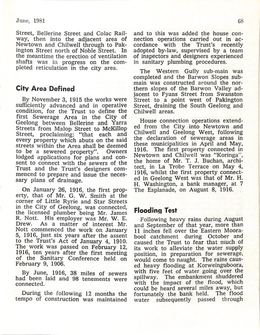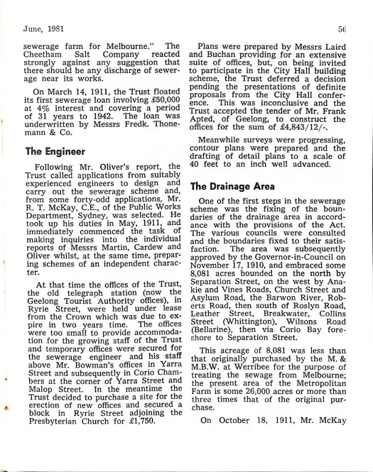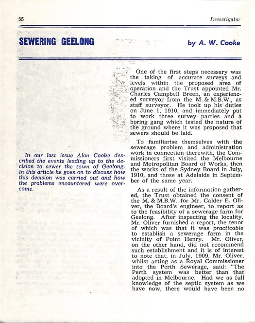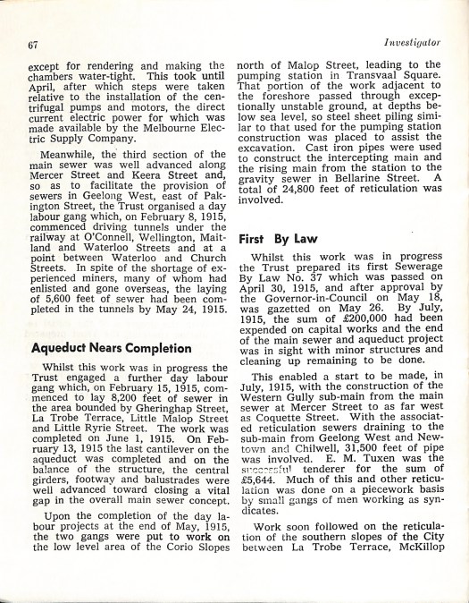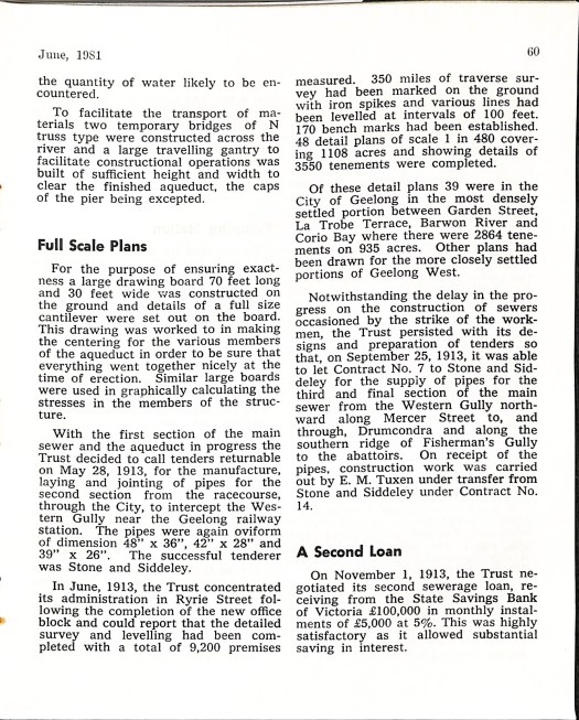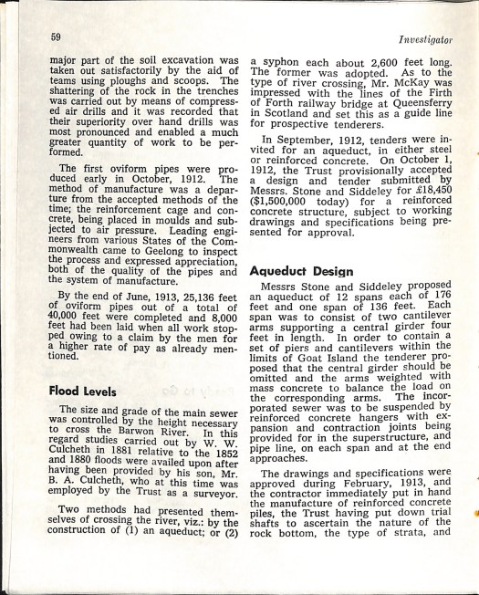 History of the Barwon Sewer Aqueduct reprinted with permission of the Geelong Historical Society. The article was first published in their Investigator Journal, June 1981